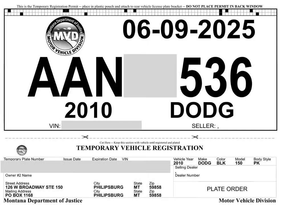 Speed: We can usually email you back your Temp Tag within 1 business day! We are limited to the State of Montana's DMV, so weekends and holidays are exceptions, but normally you'll be driving legally within one day.